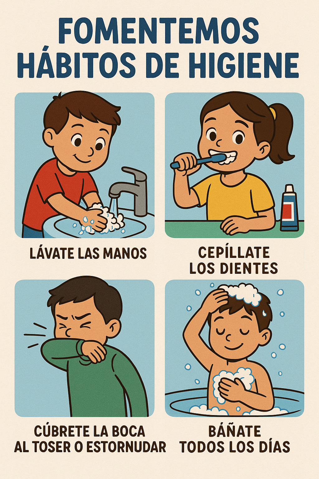 En este punto creamos consciencia de como podemos tener buenos hábitos de higiene personal, siguiendo unos breves pasos.